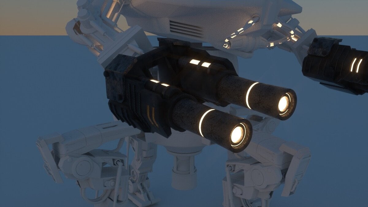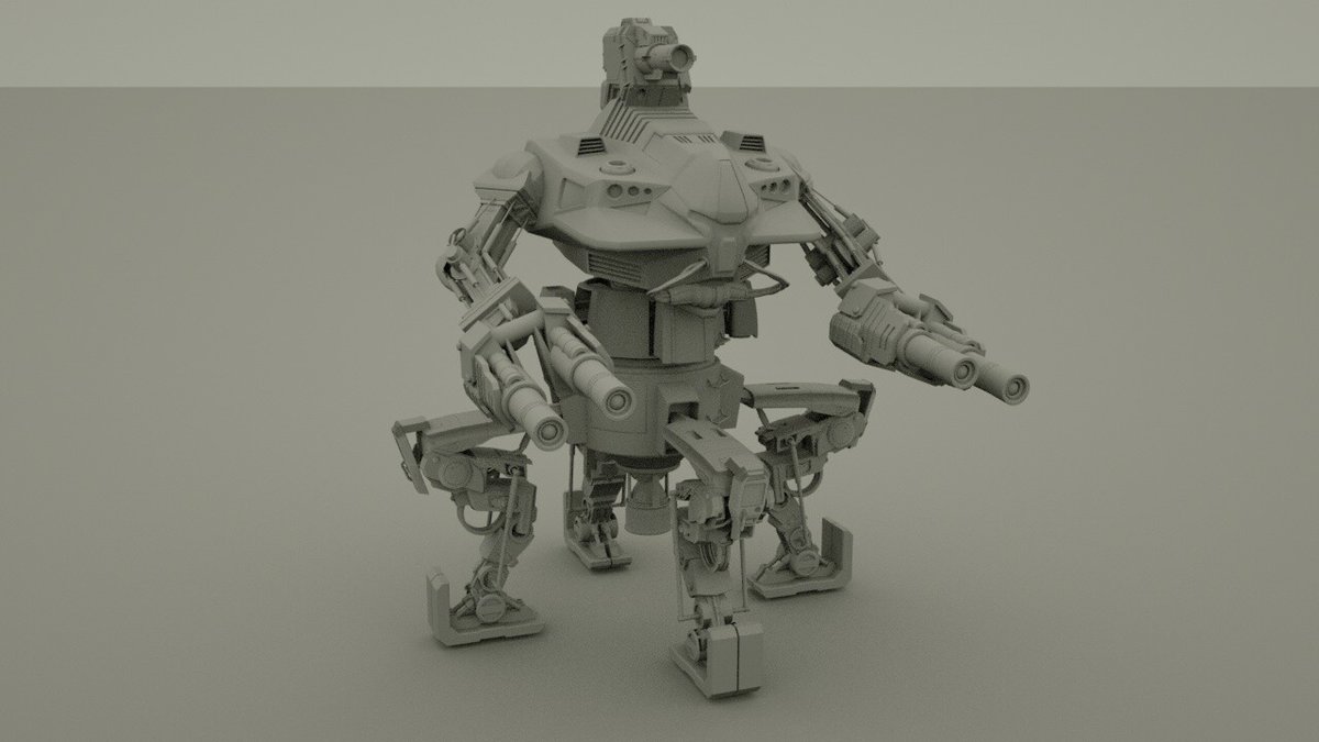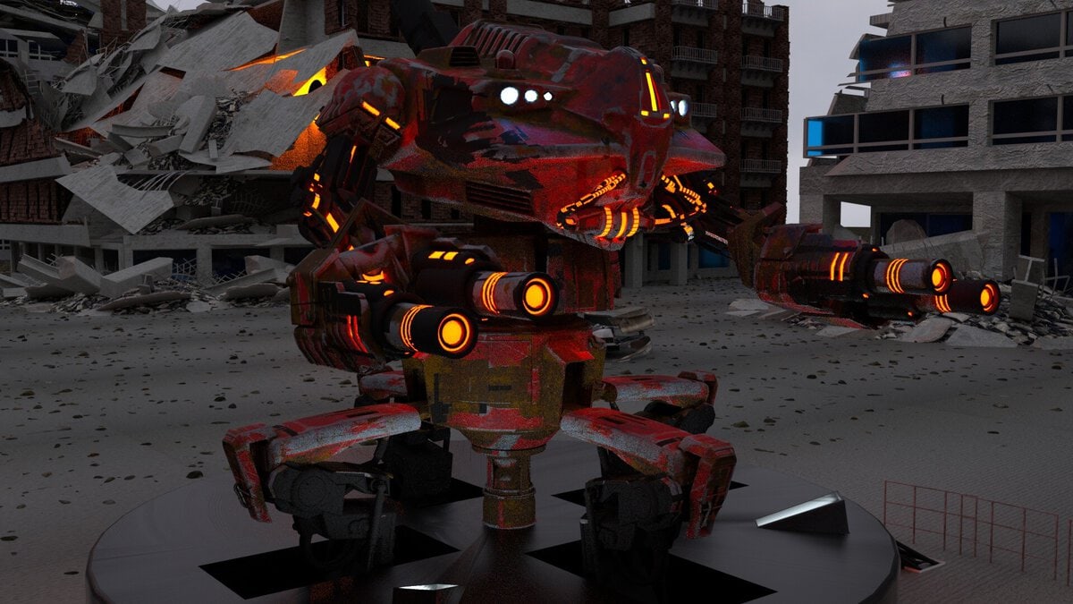 Le robot, pensé comme une créature mécanique semi-autonome, dispose de plusieurs armes (tourelles, canons, lance-missiles) et interagit avec son environnement en temps réel.
