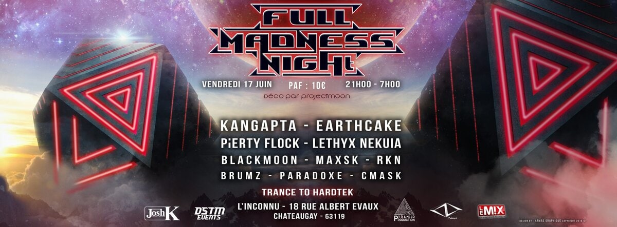 Musique / soirées électroniques : Pyramiid Production (Lyon), 1001 Bass (Saint-Étienne), DSTM Event, Amnexia (Paris), Follow Me (Glazart, Paris), I Need Hardbass, Influence, OneShoot Club (Lattes), Outrance (Lyon), Paradoxal Vision (Club W, Le Havre), Punchim…