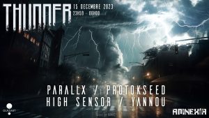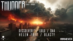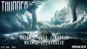 Thunder, c’est un projet né de ma collaboration de longue date avec le collectif Amnexia, acteur majeur de la scène techno et hard techno à Paris.