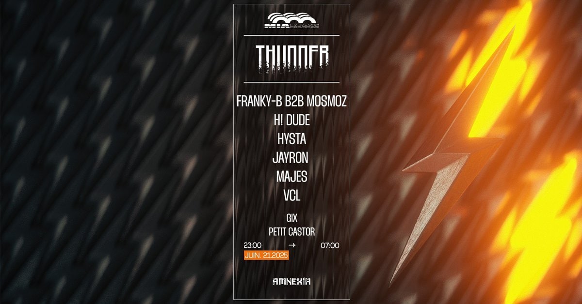 Thunder, c’est un projet né de ma collaboration de longue date avec le collectif Amnexia, acteur majeur de la scène techno et hard techno à Paris.